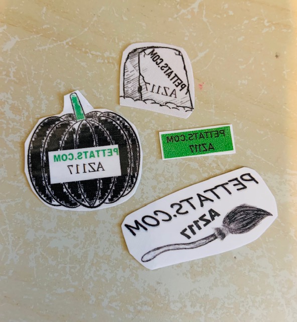 These are assorted Halloween Style PETTATS – temporary transfer tattooed Id’s. They press on with water. They last on oily skin such as dog skin for up to two weeks and on most type of fur for up to a few months. They can last on reptile type non-oily skin for up to 3 months as well. In most cases they are removable with soap and warm water. This is a great form of temporary collarless animal Id try them!